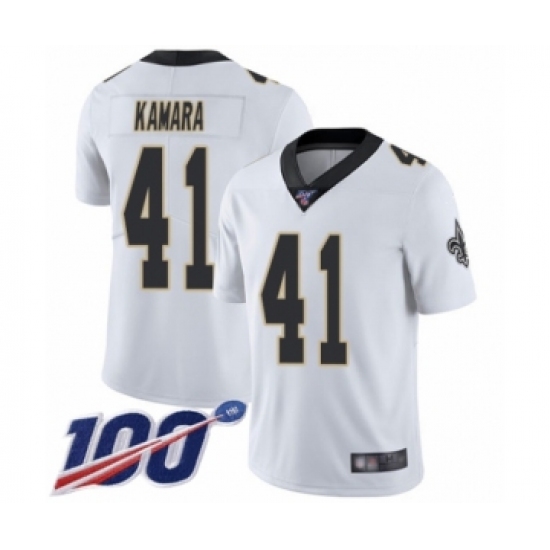 >Men's New Orleans Saints #41 Alvin Kamara White Vapor Untouchable Limited Player 100th Season Football Jersey