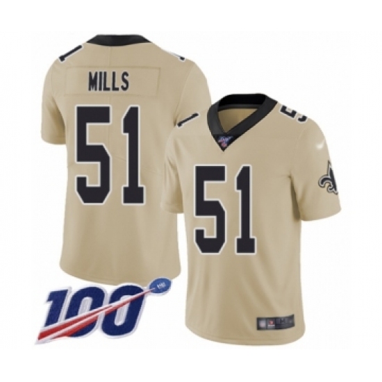 >Men's New Orleans Saints #51 Sam Mills Limited Gold Inverted Legend 100th Season Football Jersey