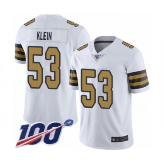 >Men's New Orleans Saints #53 A.J. Klein Limited White Rush Vapor Untouchable 100th Season Football Jersey