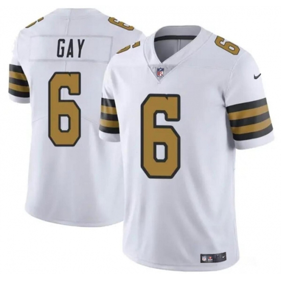 >Men's New Orleans Saints #6 Willie Gay White Color Rush Limited Football Stitched Jersey