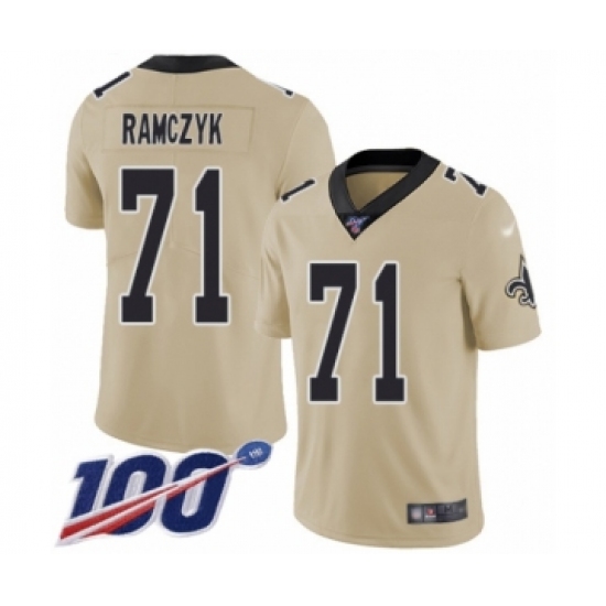 >Men's New Orleans Saints #71 Ryan Ramczyk Limited Gold Inverted Legend 100th Season Football Jersey