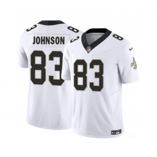 >Men's New Orleans Saints #83 Juwan Johnson White 2023 F.U.S.E. Vapor Untouchable Limited Football Stitched Jersey