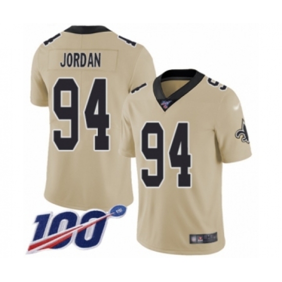 Men's New Orleans Saints #94 Cameron Jordan Limited Gold Inverted Legend 100th Season Football Jersey