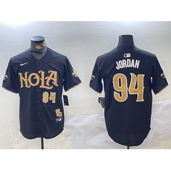 Men's New Orleans Saints #94 Cameron Jordan Number Black Nola Baseball Jersey
