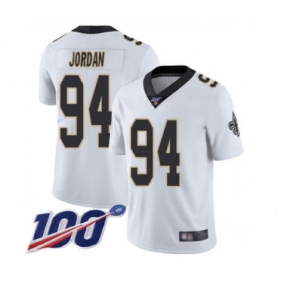 Men's New Orleans Saints #94 Cameron Jordan White Vapor Untouchable Limited Player 100th Season Football Jersey