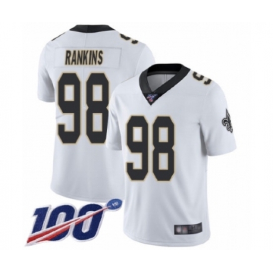 >Men's New Orleans Saints #98 Sheldon Rankins White Vapor Untouchable Limited Player 100th Season Football Jersey