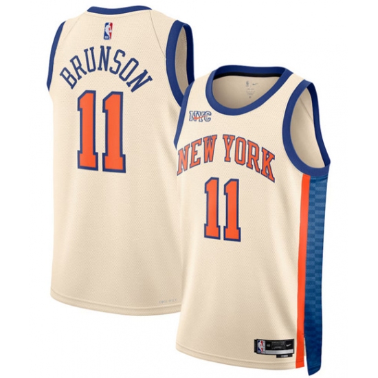 Men's New Yok Knicks #11 Jalen Brunson Cream 2025-26 City Edition Swingman Stitched Basketball Jersey