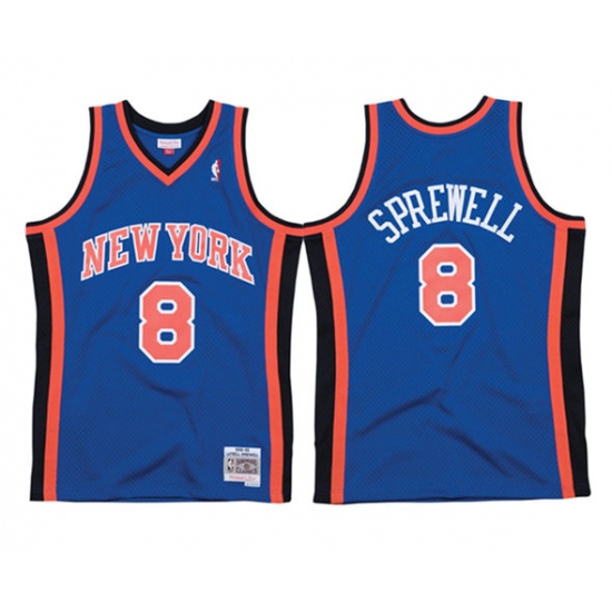 >Men's New Yok Knicks #8 Latrell Sprewell Blue Mitchell & Ness 98-99 Road Swingman Stitched Jersey