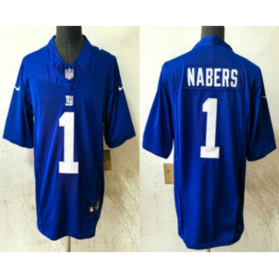 Men's New York Giants #1 Malik Nabers Blue 2024 FUSE Vapor Stitched Jersey