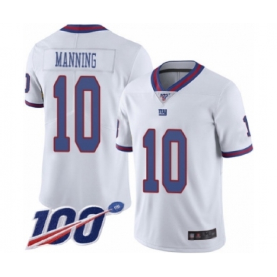 Men's New York Giants #10 Eli Manning Limited White Rush Vapor Untouchable 100th Season Football Jersey