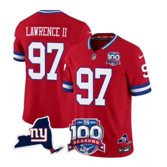 Men's New York Giants #97 Dexter Lawrence II Red 2025 F.U.S.E. 100th Season & State Patch Vapor Limited Football Stitched Jersey