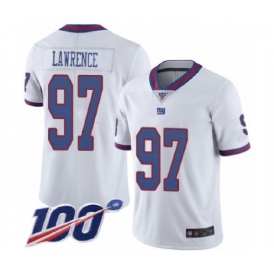 >Men's New York Giants #97 Dexter Lawrence Limited White Rush Vapor Untouchable 100th Season Football Jersey