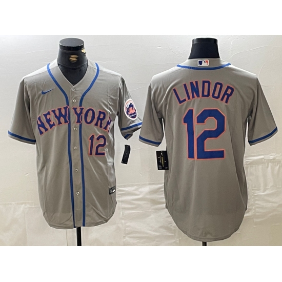 Men's New York Mets #12 Francisco Lindor Number Grey 2024 City Connect Cool Base Stitched Jerseys