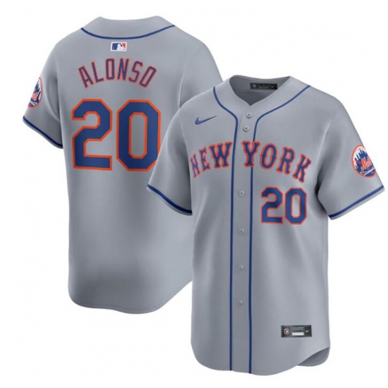 Men's New York Mets #20 Pete Alonso 2024 Gray Away Limited Stitched Baseball Jersey