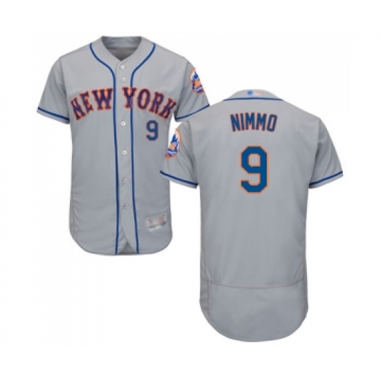 Men's New York Mets #9 Brandon Nimmo Grey Road Flex Base Authentic Collection Baseball Jersey