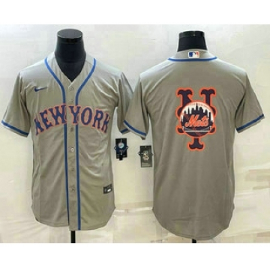 Men's New York Mets Big Logo Grey Cool Base Stitched Baseball Jerseys