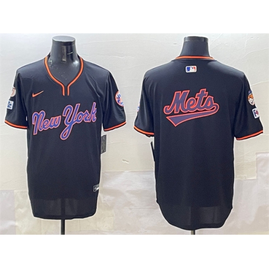Men's New York Mets Team Big Logo Black 2025 Spring Training Stitched Baseball Jersey