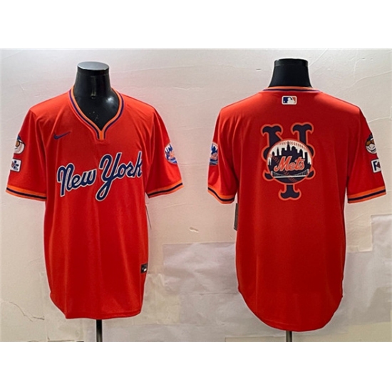 Men's New York Mets Team Big Logo Orange 2025 Spring Training Stitched Baseball Jersey