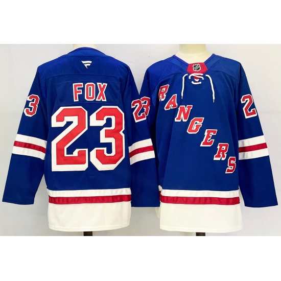 Men's New York Rangers #23 Adam Fox Blue With A Stitched Hockey Jerseyy