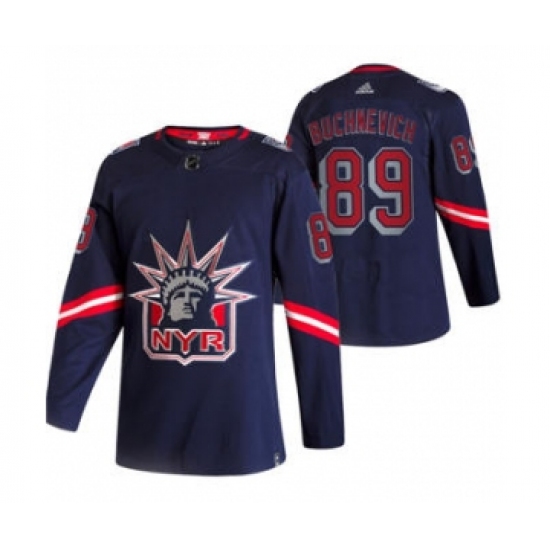 Men's New York Rangers #89 Pavel Buchnevich Navy 2020-21 Reverse Retro Alternate Hockey Jersey