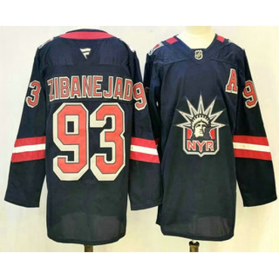 Men's New York Rangers #93 Mika Zibanejad Blue 2022-23 Reverse Retro Stitched Jersey