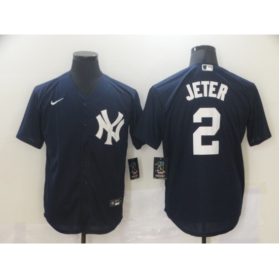 Men's New York Yankees #2 Derek Jeter Authentic Navy Blue Nike MLB Jersey