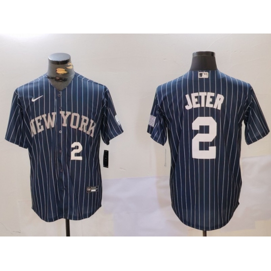 Men's New York Yankees #2 Derek Jeter Navy Pinstripe Fashion Cool Base Jerseys
