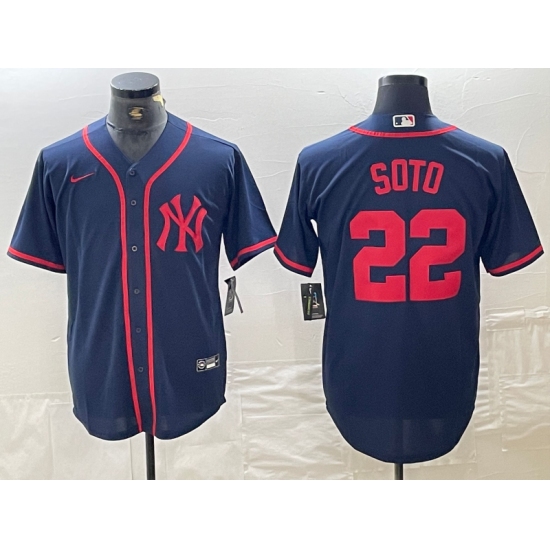 >Men's New York Yankees #22 Juan Soto Navy Red Fashion Cool Base Jersey