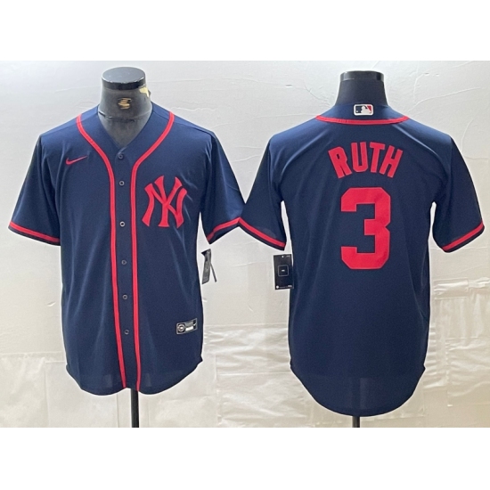 Men's Majestic New York Yankees #3 Babe Ruth Replica Navy Blue Alternate MLB Jersey