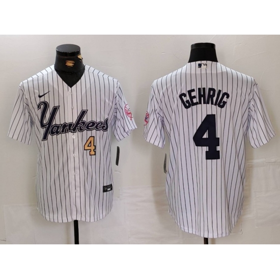Men's New York Yankees #4 Lou Gehrig White Pinstripe Fashion Cool Base Jerseys