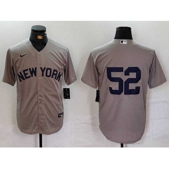 >Men's New York Yankees #52 CC Sabathia Grey Cool Base Stitched Jersey