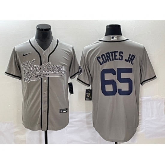 >Men's New York Yankees #65 Nestor Cortes Jr Grey Cool Base Stitched Baseball Jersey