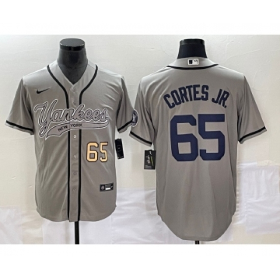 >Men's New York Yankees #65 Nestor Cortes Jr Number Grey Cool Base Stitched Baseball Jersey
