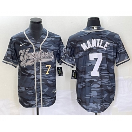 >Men's New York Yankees #7 Mickey Mantle Number Grey Camo Cool Base Stitched Baseball Jersey