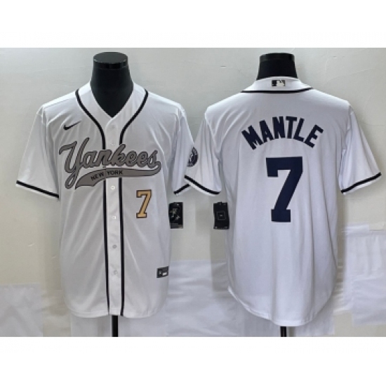 Men's New York Yankees #7 Mickey Mantle Number White Cool Base Stitched Baseball Jersey