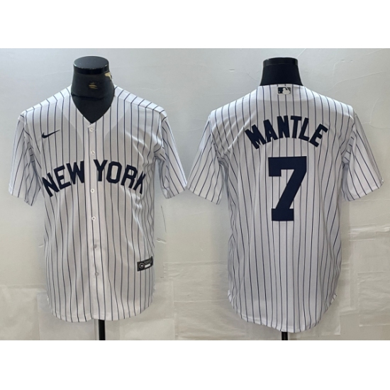 Men's New York Yankees #7 Mickey Mantle White Pinstripe Fashion Cool Base Jerseys