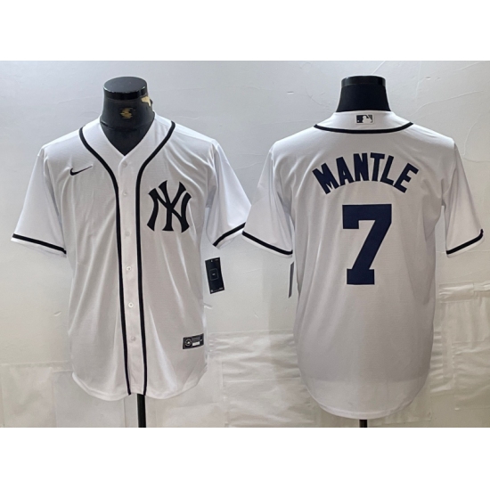 >Men's New York Yankees #7 Mickey Mantle White Fashion Cool Base Jersey