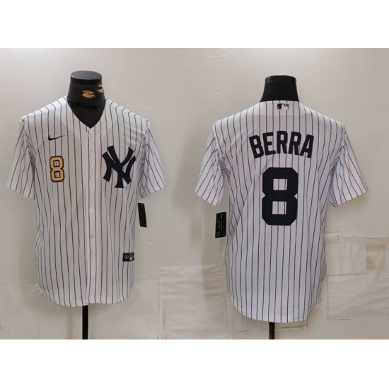 >Men's New York Yankees #8 Yogi Berra White Stitched Nike Cool Base Throwback Jerseys
