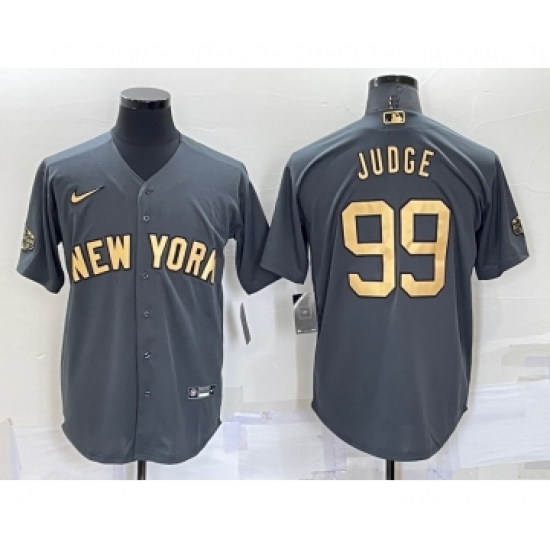 >Men's New York Yankees #99 Aaron Judge Grey 2022 All Star Stitched Cool Base Nike Jersey
