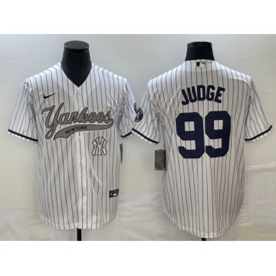 Men's New York Yankees #99 Aaron Judge White Pinstripe Fashion Cool Base Jerseys