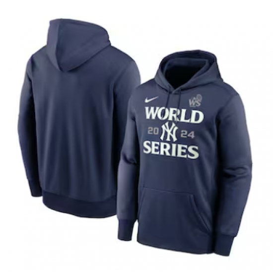 Men's New York Yankees Nike Navy 2024 World Series Authentic Collection Therma Pullover Hoodie