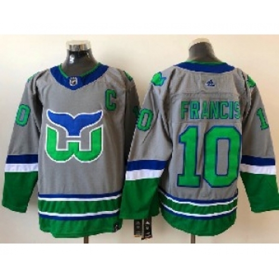 >Mens Nhl Hartford Whalers #10 Francis Gray 2021 Reverse Retro Alternate Adidas Jersey