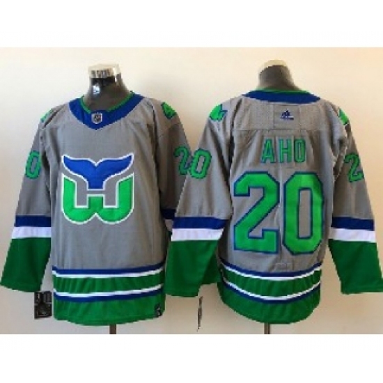 Mens Nhl Hartford Whalers #20 Aho Gray 2021 Reverse Retro Alternate Adidas Jersey
