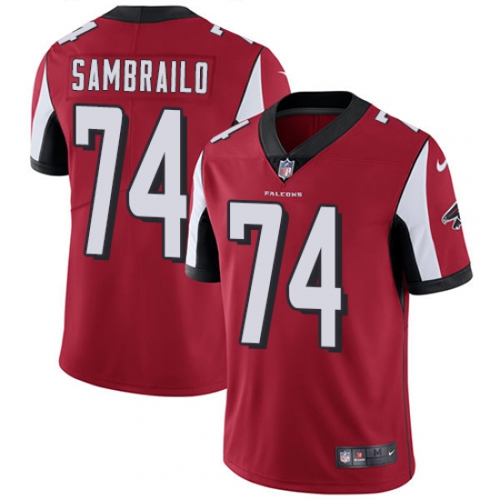 Men's Nike Atlanta Falcons #74 Ty Sambrailo Red Team Color Vapor Untouchable Limited Player NFL Jersey