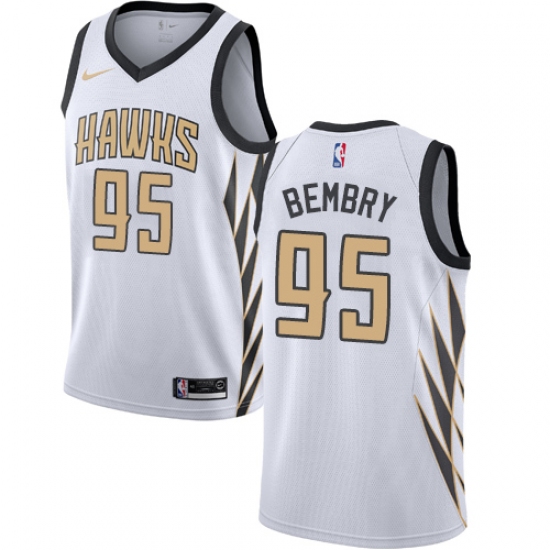 Men's Nike Atlanta Hawks #95 DeAndre' Bembry Swingman White NBA Jersey - City Edition