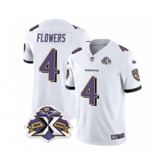 Men's Nike Baltimore Ravens #4 Zay Flowers White 2023 F.U.S.E Throwback Vapor Limited Stitched Jersey
