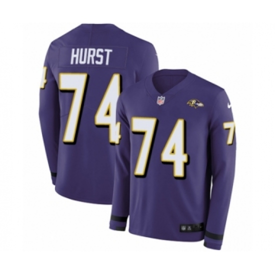 Men's Nike Baltimore Ravens #74 James Hurst Limited Purple Therma Long Sleeve NFL Jersey