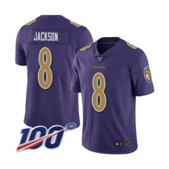 Men's Nike Baltimore Ravens #8 Lamar Jackson Limited Purple Rush Vapor Untouchable 100th Season NFL Jersey