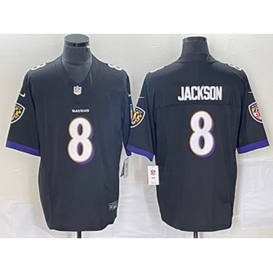 Men's Nike Baltimore Ravens #8 Lamar Jackson Black White 2023 F.U.S.E Throwback Vapor Limited Stitched Jersey