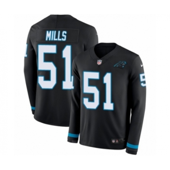 >Men's Nike Carolina Panthers #51 Sam Mills Limited Black Therma Long Sleeve NFL Jersey